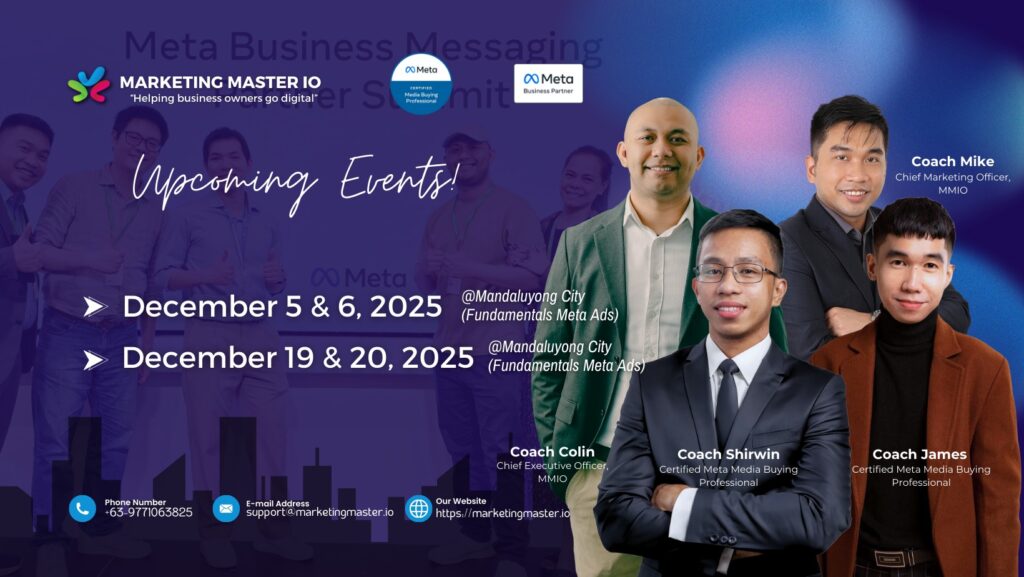 Meet Colin P. Marcelino. He Owns Marketing Master IO, a company recognized as a certified Meta Business Partner. Colin is a certified Meta Media Buying Professional who has helped hundreds of business owners and entrepreneurs. He’s also guided thousands of Filipinos in social media to harness Facebook advertising, e-commerce, and digital marketing. Colin is known for his expertise in chatbot automation and Facebook advertising. Learn from his experience to grow your business online.